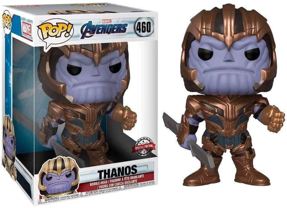 Funko POP! Supersized Figur von Thanos aus Marvels Kino-Blockbuster Avengers: Endgame.