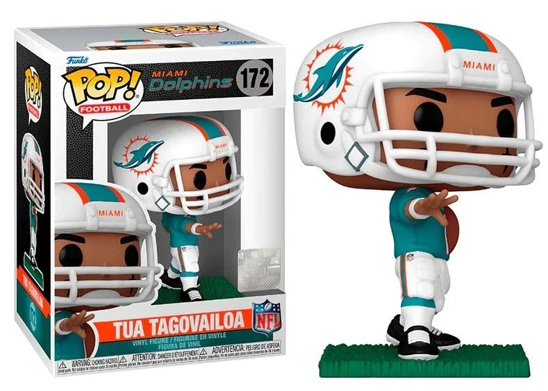 Funko POP! Figur von NFL Spieler Tua Tagovailoa bei den Miami Dolphins.