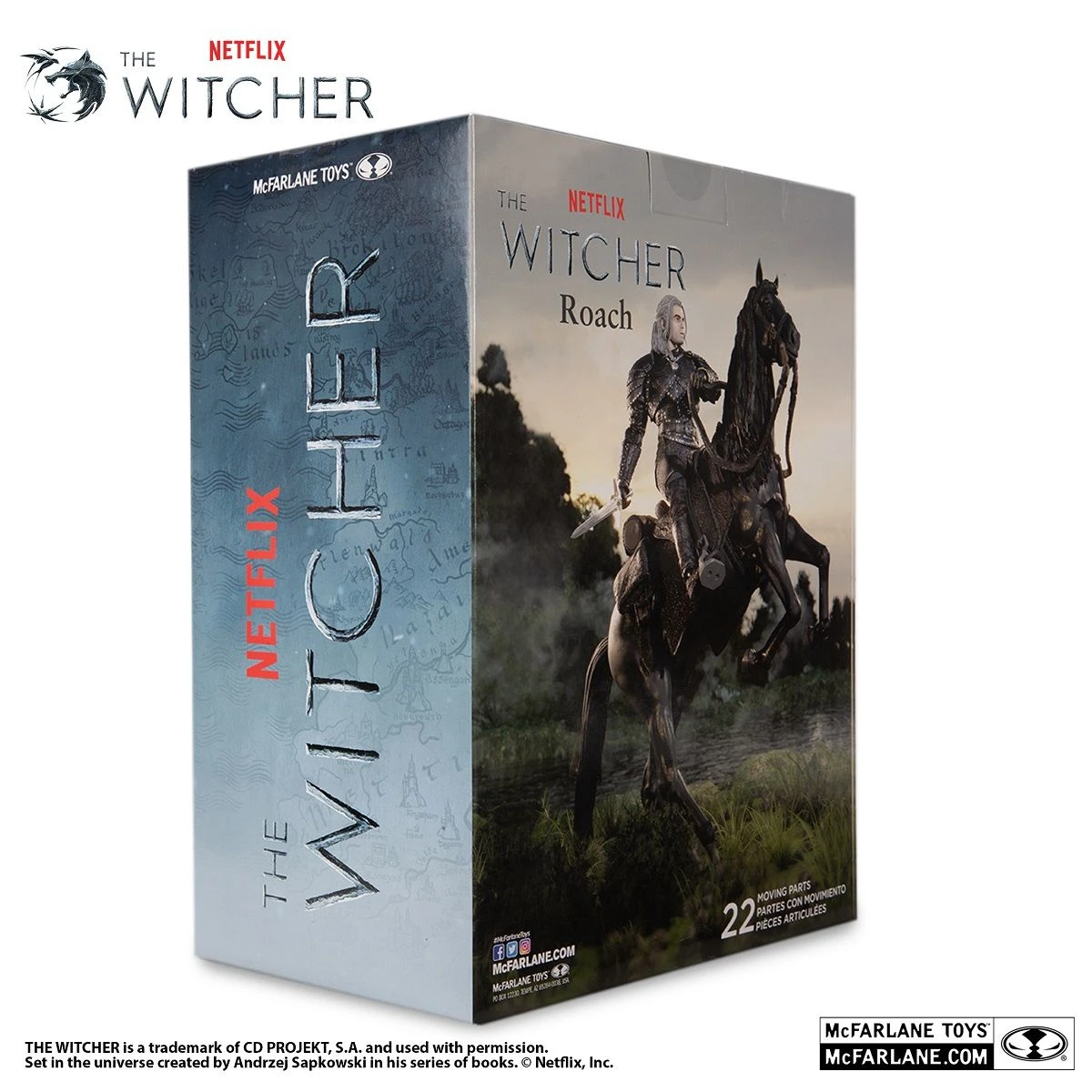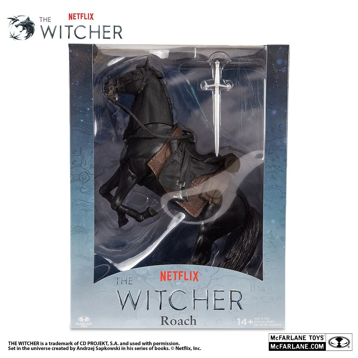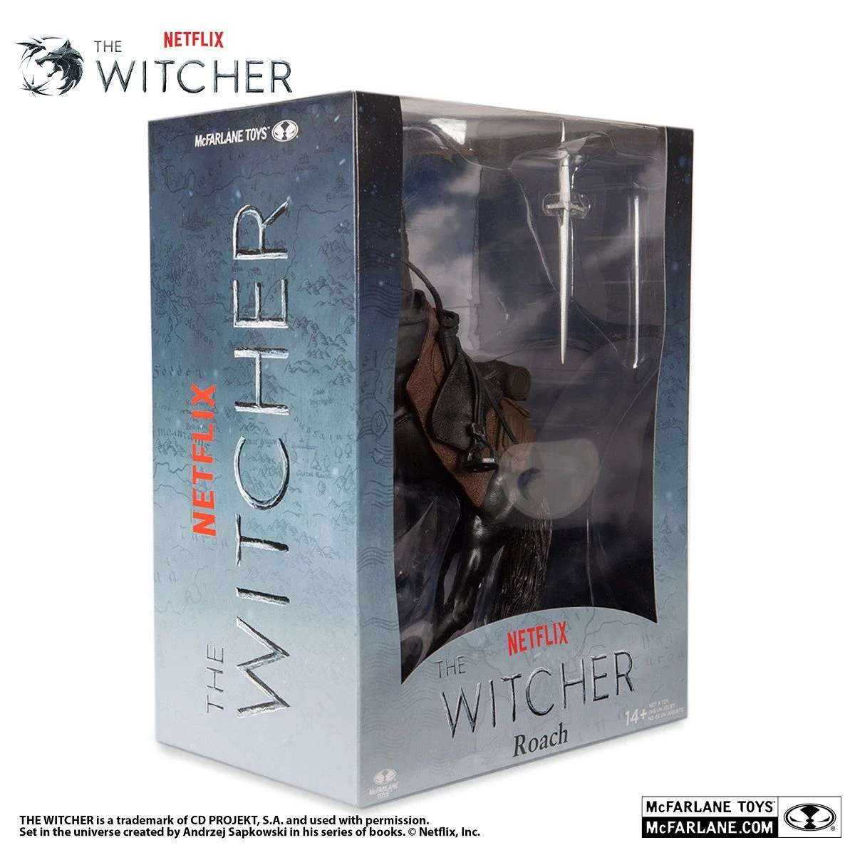 Aus der 2.Season von The Witcher kommt Roach, Geralt von Rivas Pferd, präsentiert von McFarlane Toys. Roach ist der Name, den Geralt jedem Pferd gibt, das er hat, unabhängig davon, ob es sich um verschiedene Pferde handelt. Ein schwarzer Hengst übernimmt als aktueller Roach die Herrschaft.
